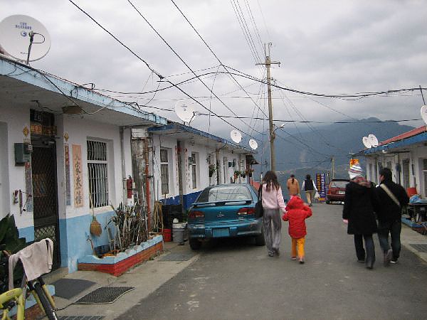 樸實的小眷村...每一戶人家卻多了一排"盤子"...