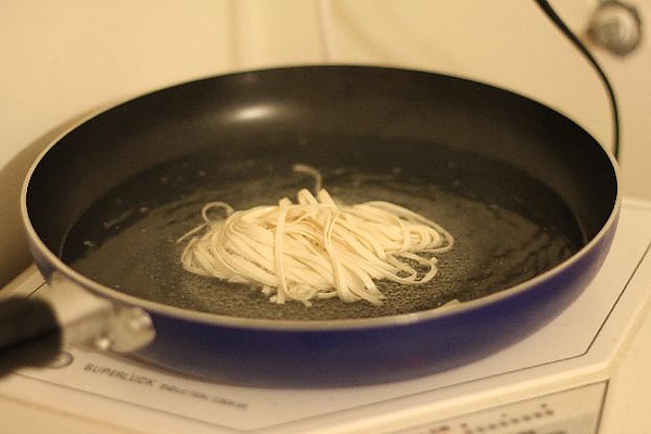 準備放入手工陽春麵