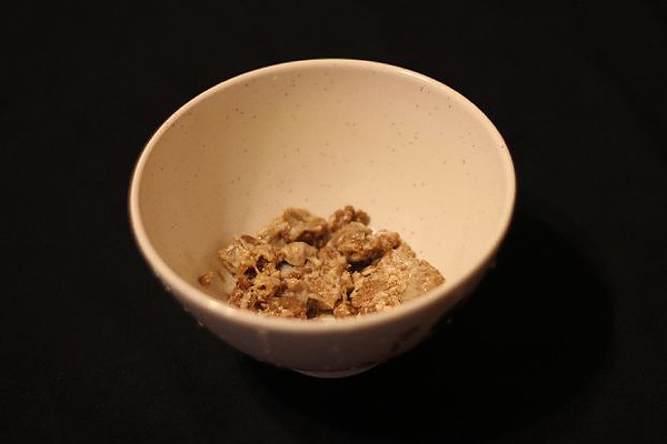 將退完冰的手工肉燥放在碗底