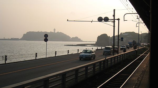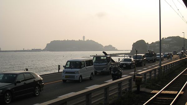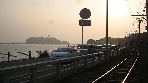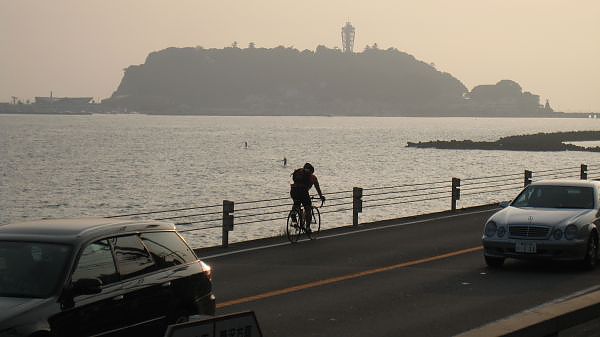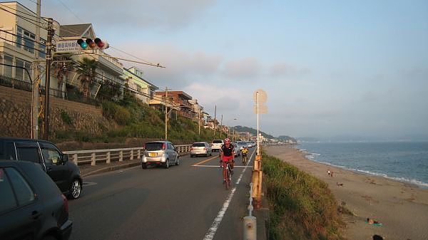 這段公路緊鄰著湘南海岸
