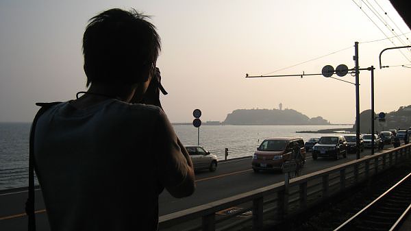 為了拍到"灌籃高手"裡的平交道.電車與海岸
