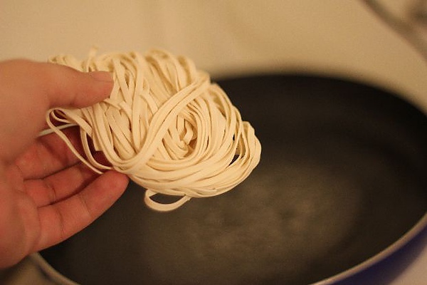 準備放入手工陽春麵